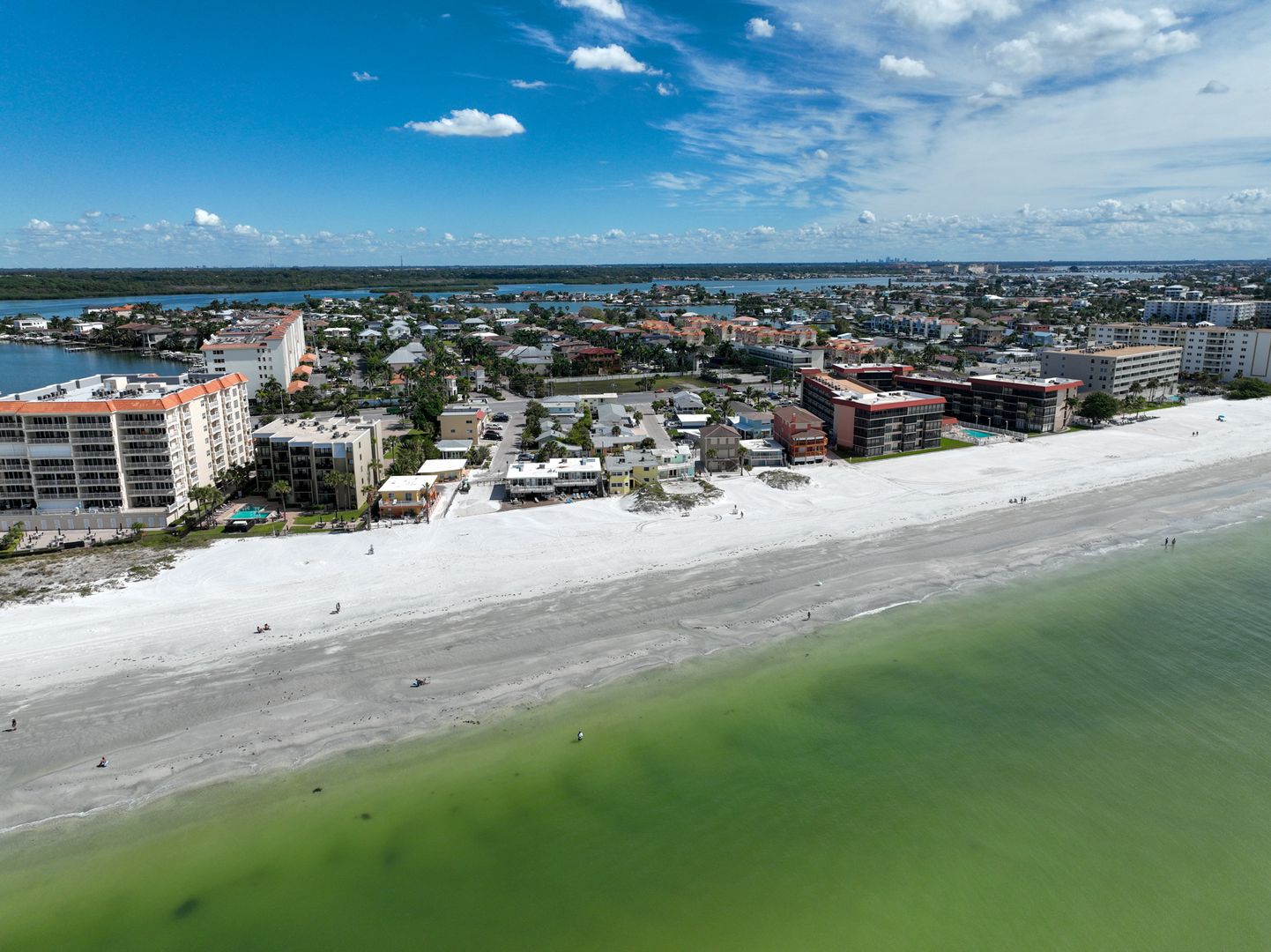 Unfurnished Reddington Shores Beachfront 1 bedroom unit sitting directly on the sand of the beautiful Gulf of Mexico. Walk directly out your door to put your toes in the ocean waves. Direct access to all things amazing. This 1 bedroom has been completely remodeled and is located in the middle of it all. Amazing amount of storage for this square footage. Super efficient unit that the bedroom windows face into the sand of the beach. Tons of bars & restaurants as well as shopping are just within 2 blocks. Outdoor dining via the courtyard just outside your door! Shared laundry is onsite free of charge as well just outside your door. Parking available for 1 vehicle only as space is limited for parking onsite.