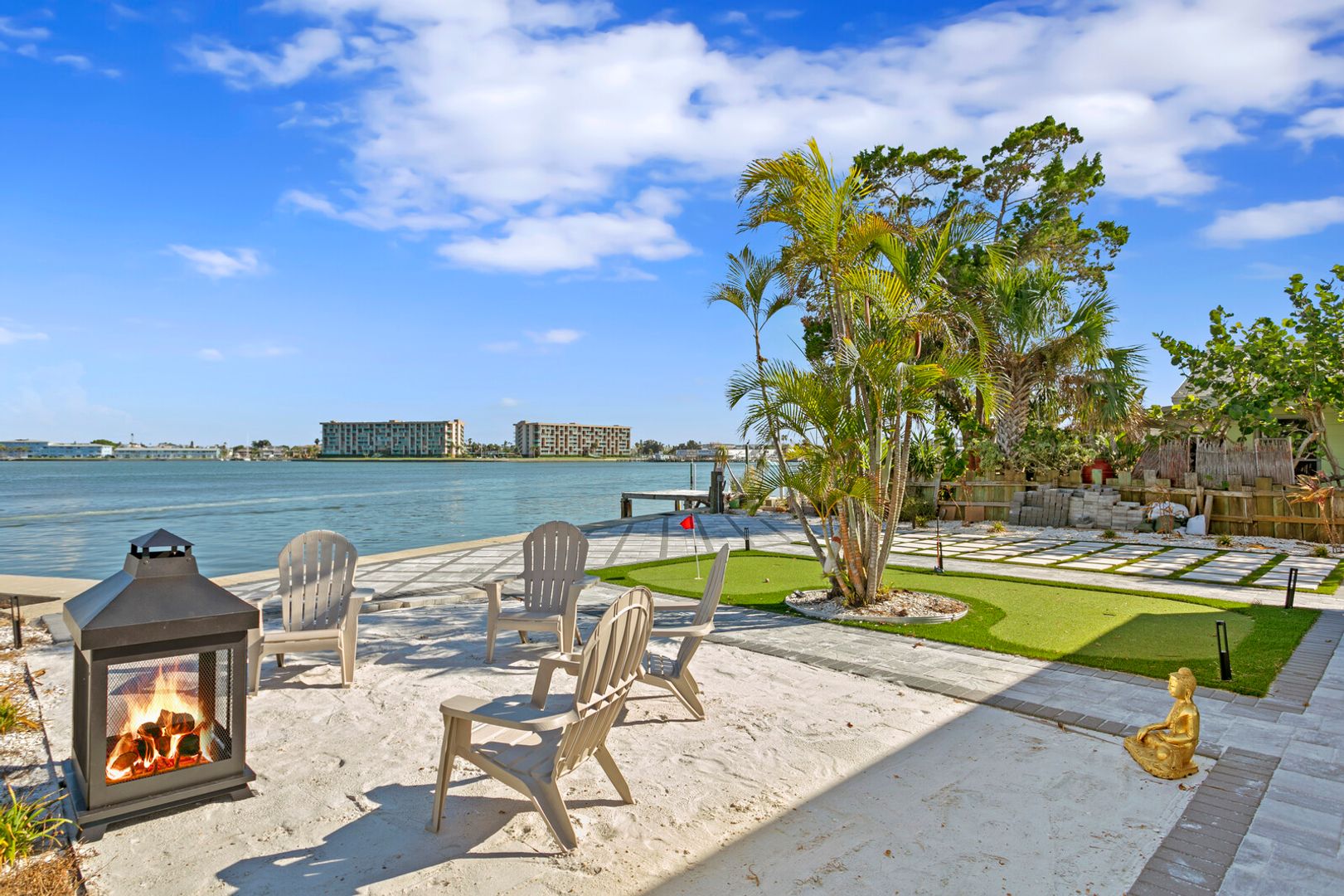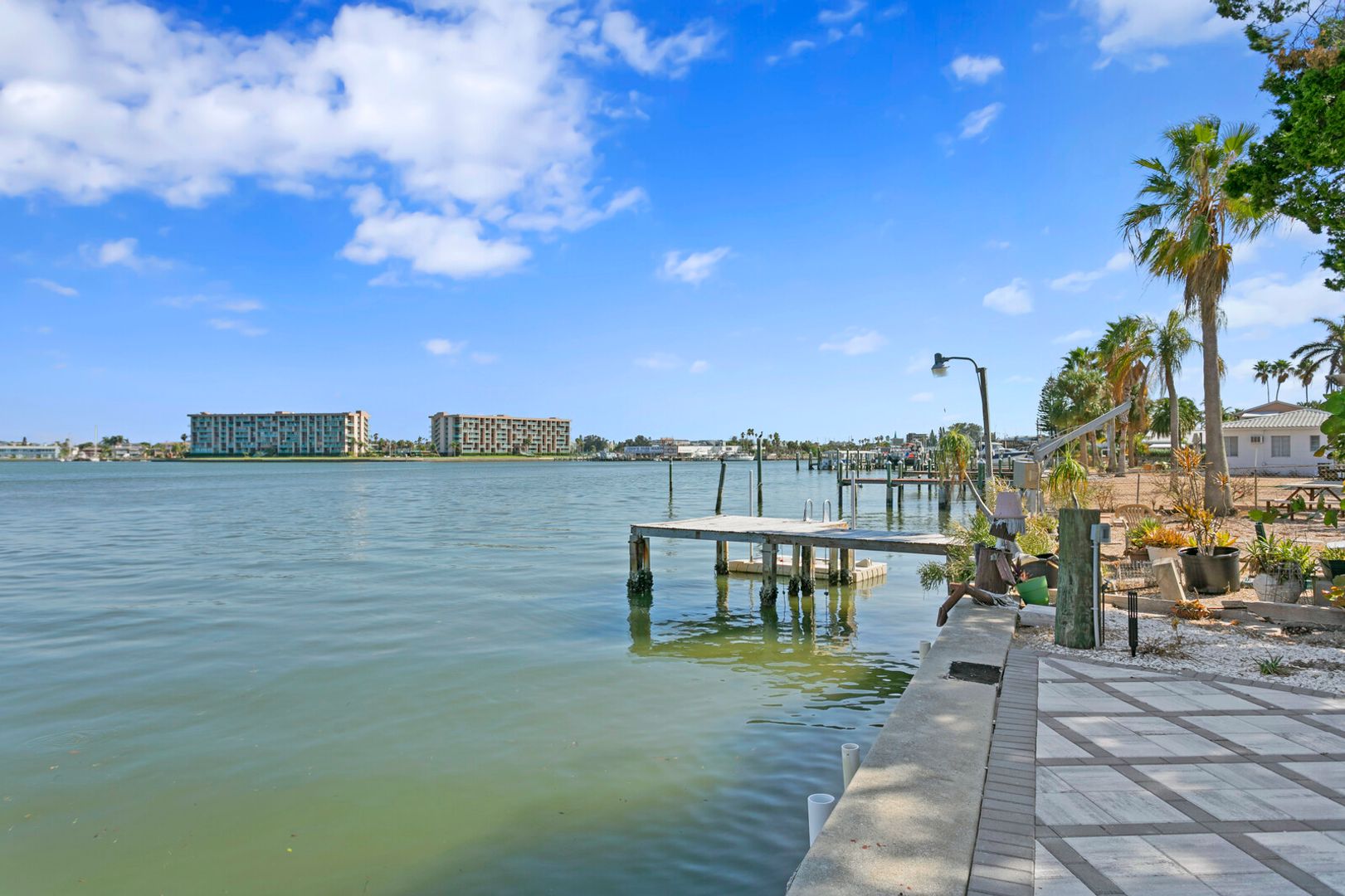 Escape to a tranquil retreat at Seaside Haven, a luxurious 1-bedroom/1-bathroom ground-level unit. This waterfront gem offers mesmerizing views of Boca Ciega Bay from your doorstep. Step outside to your private patio, sip your morning coffee and watch the dolphins play. Sunsets are a daily masterpiece. You're just a stroll away from the famous John's Pass, where dining and shopping options abound. And when the beach beckons, it's only a 5-minute walk. The 2.5 miles of pristine beaches offer a serene escape for relaxation, strolling, and swimming. Additionally, explore the rocky southern point, a popular spot for shoreline adventures. John's Pass Village and Boardwalk, just minutes away, serves as the heart of this charming seaside community. Here, you'll find a captivating blend of shops, eateries, and an 1100-foot boardwalk, perfect for leisurely strolls.
